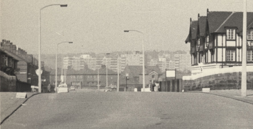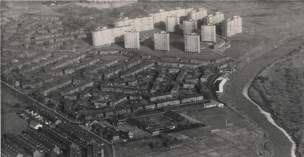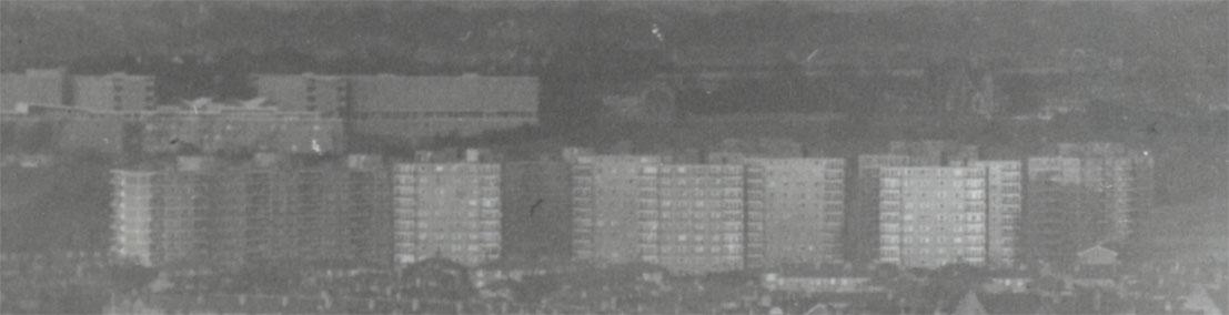 An overview of the flats and surrounding area from sometime in the 1960s. A closer in view of the flats below