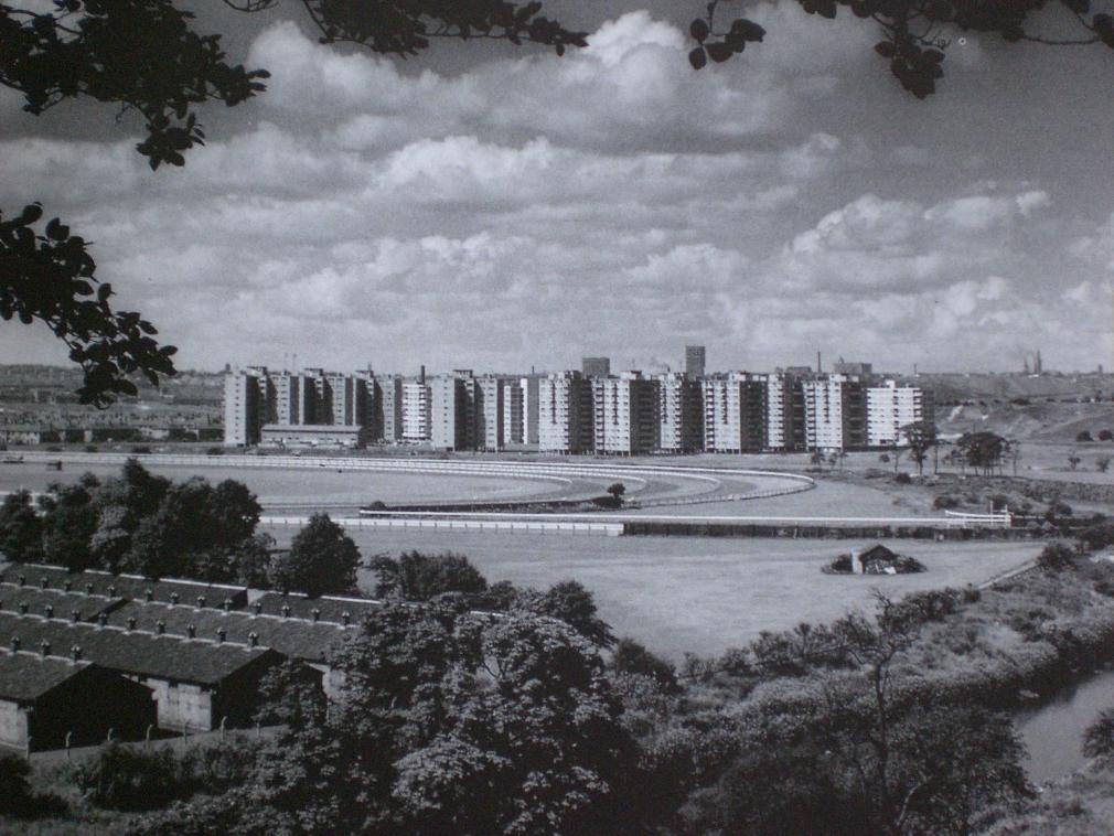 A stunning view of the Racecourse, the flats and Kersal Dale approx 1961 . |