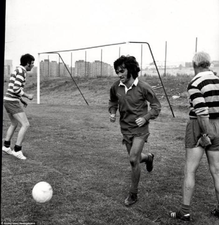 Another picture of George Best training at the Cliff with Kersal Flats in the background |