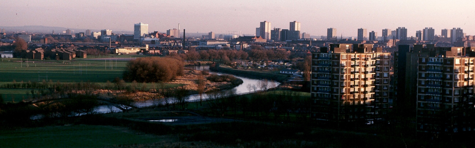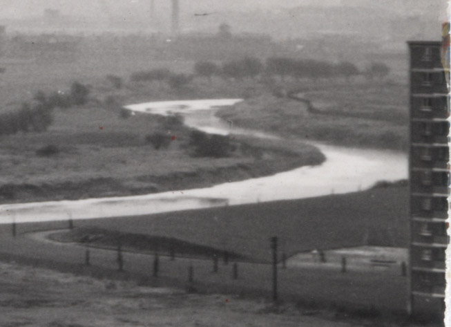 A view from Kersal Dale of Spencer House, the park and the Irwell in 1964.