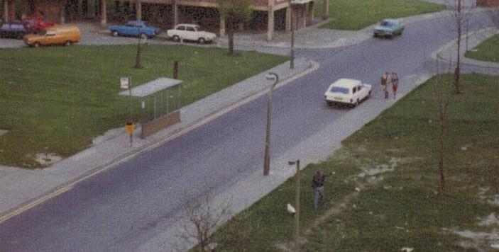 A view of the shops in 1980. Roll your mouse over the image for a comparison with the shops as they were in 1960 when just built.