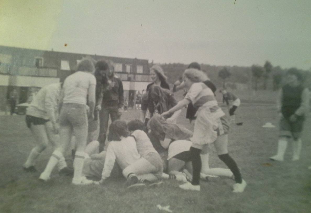 More action and the goalkeeper looks like she is clearing the ball. You can see that this has attracted a reasonable crowd. Note how terrible the pitch is yet at the time it seemed top notch.