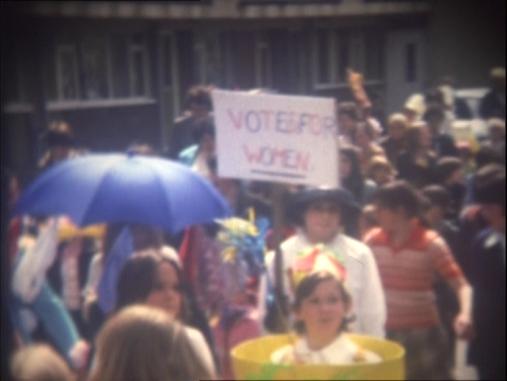 Some girls have come dressed as suffragettes, and some strange person in a yellow barrel !