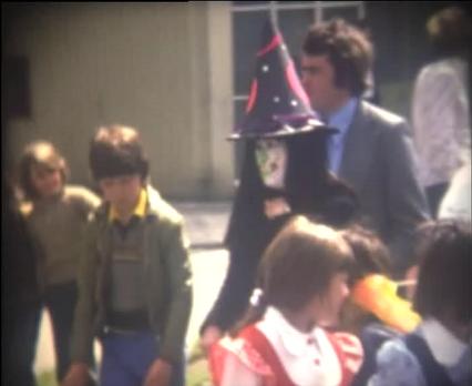 The parade reaches the field at the back of John Bacon Court and again we can see Martin Ormandy dressed as a box of OXO cubes.